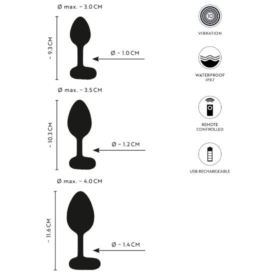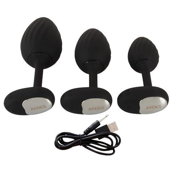 O conjunto inclui 3 plugs vibratórios de diferentes tamanhos que proporcionam prazer anal e um treino de alongamento estimulante.