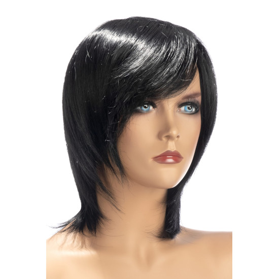 Peruca de alta qualidade muito semelhante ao cabelo humano feita com fibras sintéticas.