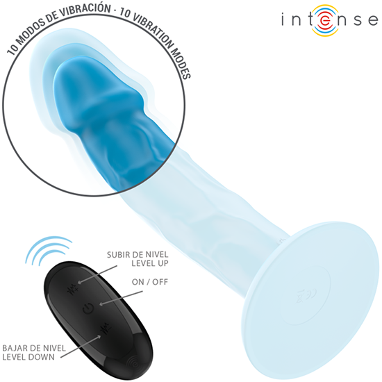 Com veias e glande salientes, ideal para estimulação anal ou vaginal, com 10 ritmos de vibração diferentes, controlados por comando remoto, sem fios.