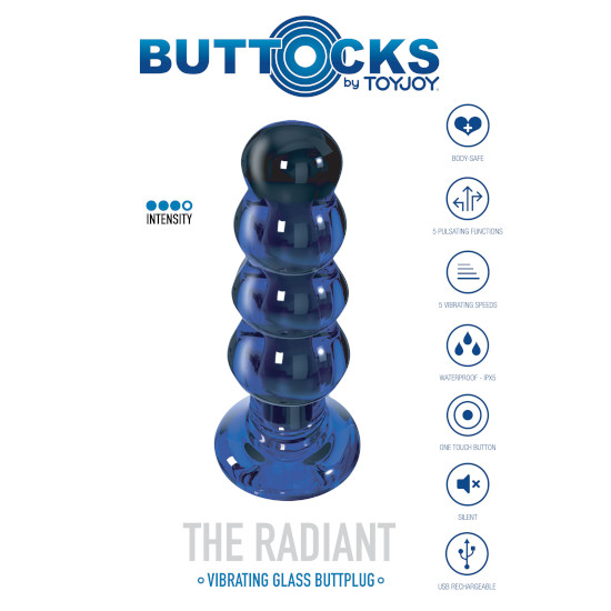 O Radiant é um plug anal de vidro vibratório e possui um motor potente com 5 modos de vibração diferentes e 5 velocidades de vibração.