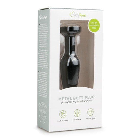 Este impressionante plug anal de alumínio polido apresenta um cristal grande e bonito.