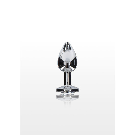O plug elegante apresenta uma silhueta cónica e base larga, aprimorada com um toque de pedra preciosa brilhante no final.