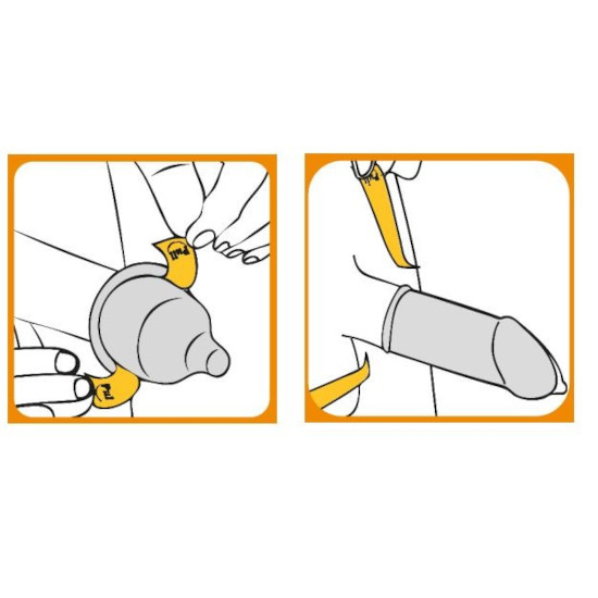 - Sistema exclusivo de tiras: basta colocar a camisinha na ponta do pénis e puxar as tiras.