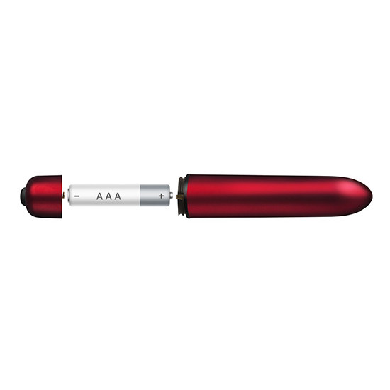 Vibrador vermelho pecado com 16,2cm de comprimento e 3,3cm de diâmetro.