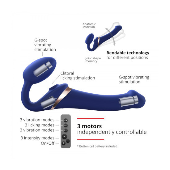 - Dois motores de vibração na vagina e parte penetrante e outro para percussão no clitóris.
