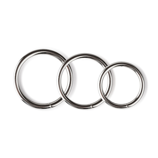 Inclui 3 argolas metálicas de diferentes tamanhos (4,7 cm, 5,6 cm e 6 cm).
