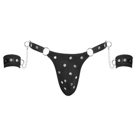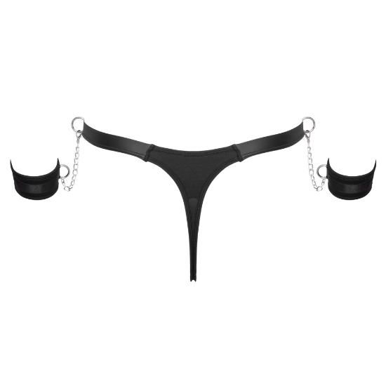 A tanga preta da Svenjoyment Bondage inclui algemas macias.