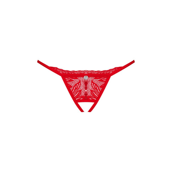 A delicada tanga Chilisa da Obsessive é feita de renda floral fina e é convidativa e reveladora na virilha.