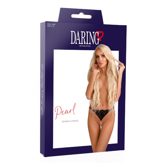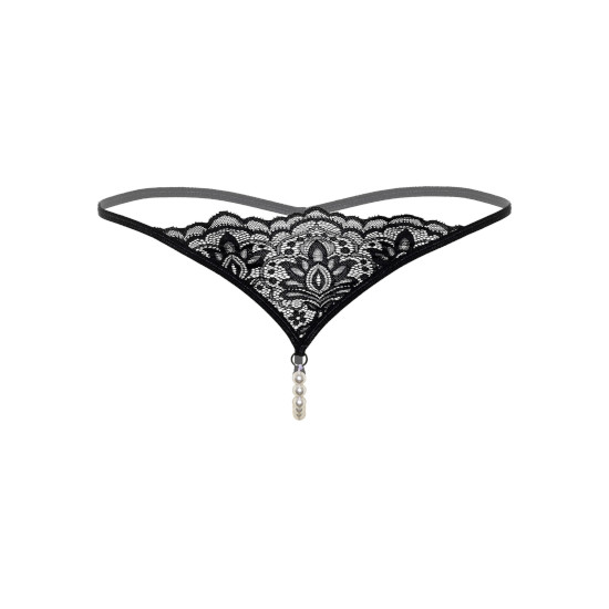Fio dental ultra sexy com painel de renda na frente e pérolas falsas na virilha.