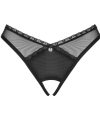 Tanga preta transparente sem virilha Latinesa by Obsessive confeccionada em tule stretch macio com acabamento em renda e pequeno elemento decorativo na frente do cós. Sedutoramente aberto na virilha e decorado com bordados elaborados no rabo.