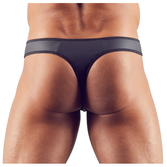 Tanga para ele em tecido acetinado mate combinado com rede preta.