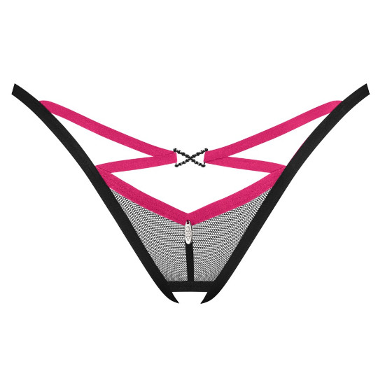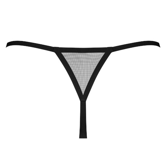A tanga preta transparente e sem virilha Novenes da Obsessive é feita de material powernet macio.