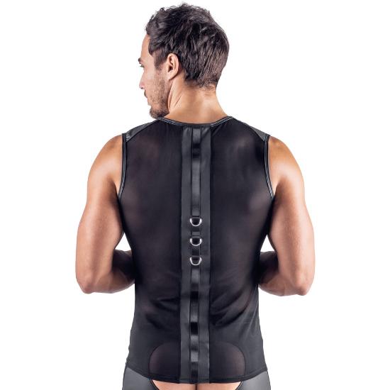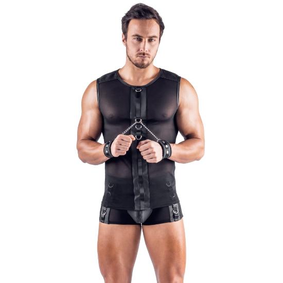 Esta camisa preta sem mangas da Svenjoyment Bondage inclui algemas macias.