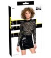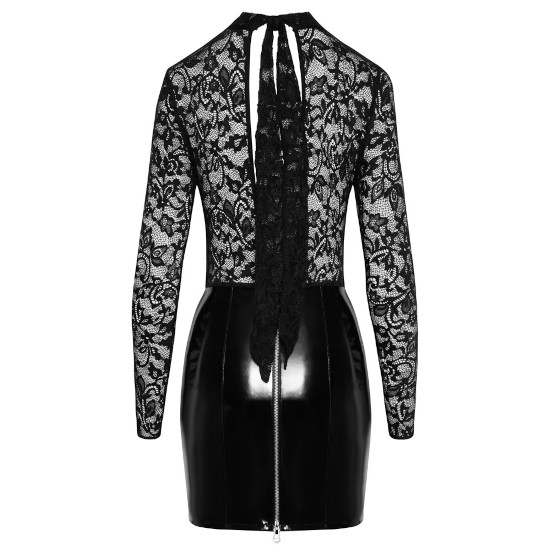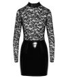 O acentuado mini-vestido preto de mangas compridas da Black Level é feito de renda delicada (parte superior) e vinil brilhante (parte da saia).