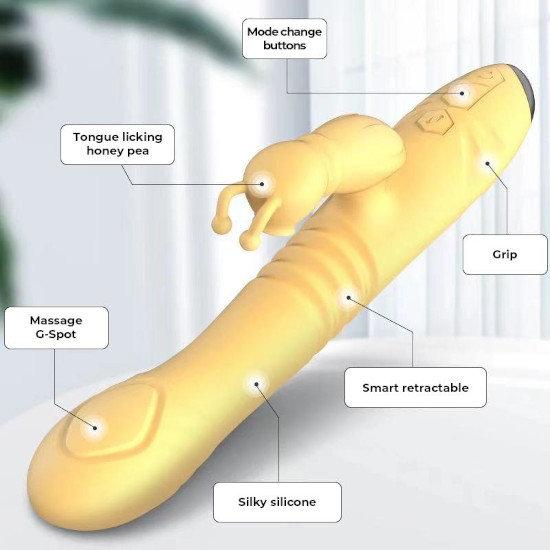 23.5×3.7cm Vibrador c/língua, função cima/baixo e pulsação HONEYBEE