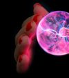 A bola de plasma acende ao entrar em contacto com a pele.