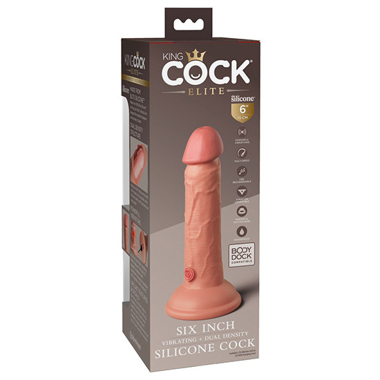 Vibrador Natural Recarregável de Silicone de Dupla Densidade da King Cock Elite em aparência de pénis hiper-realista feito de material de silicone de dupla densidade que parece pele real.