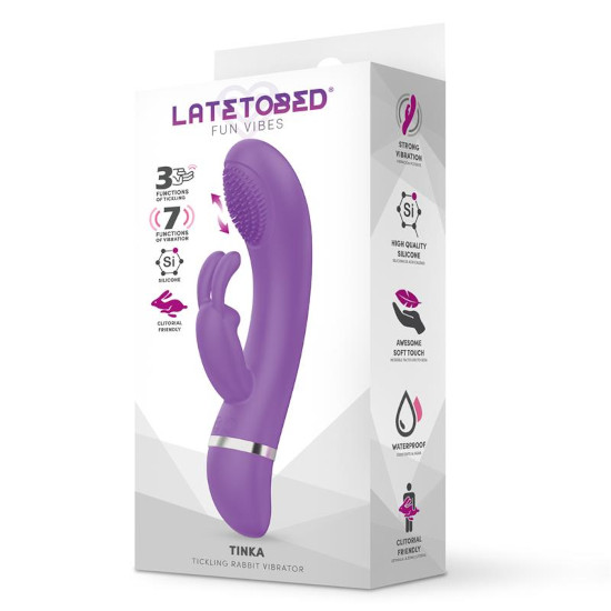 Adicione a Tinka à sua coleção, o nosso novo vibrador com função de dedos (ou cócegas) e um estimulador clitoriano em forma de coelho muito divertido.