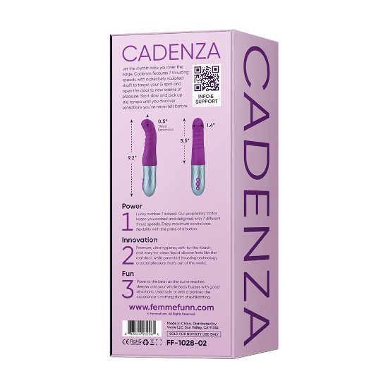 Cadenza apresenta 7 velocidades de impulso com uma haste precisamente esculpida para atingir o seu ponto G e abrir a porta a novos reinos de prazer.