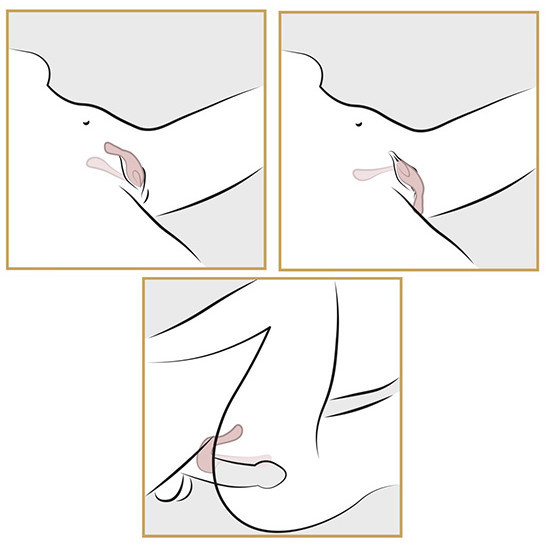 A extremidade rígida é inserida na vagina e a extremidade flexível fica no clitóris ou é inserida no ânus.