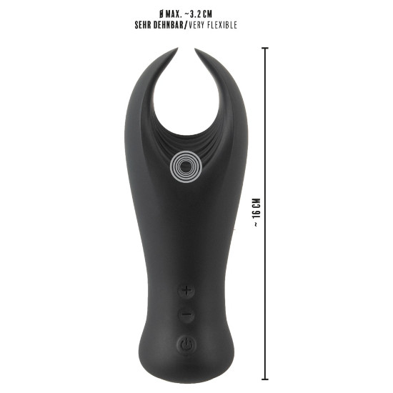 Comprimento total 16 cm, asas 4 cm, Ø interior 3,2 cm (muito flexível). Peso 251 gr. Silicone, PU, ABS.
