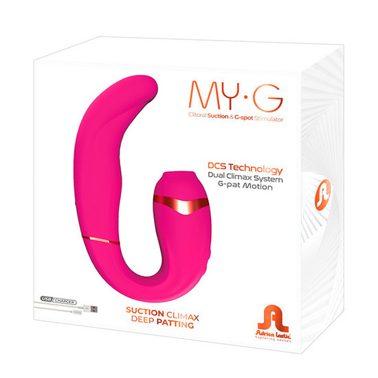 O vibrador flexível de pontos G My G de Adrien Lastic tem um sugador de clitóris e estimula intensamente dois pontos quentes ao mesmo tempo.
