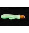 O vibrador Glow in the dark Rabbit é maravilhosamente curvo e também possui pontos estimulantes.