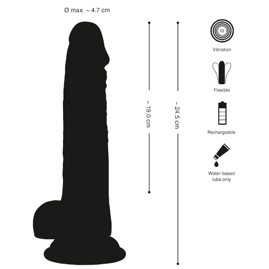 O emocionante vibrador transparente da Crystal Clear tem a forma de um pénis e também possui veias pronunciadas, uma glande totalmente formada e grandes bolas.